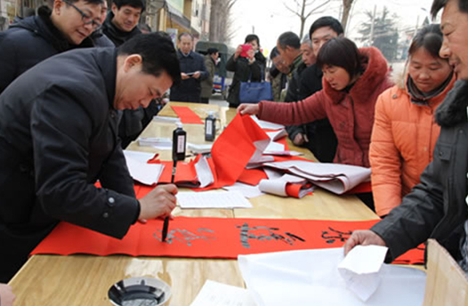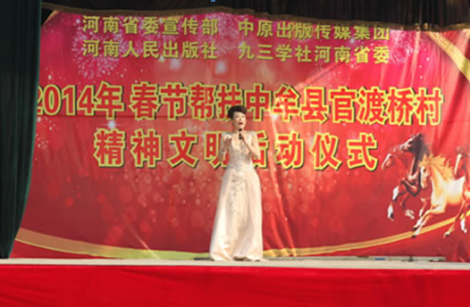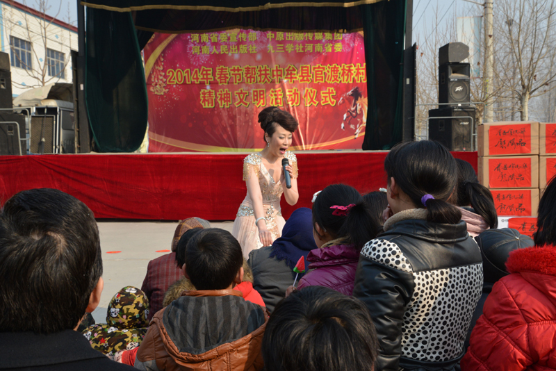 省委宣傳部副巡視員杜瑞明代表省直四家單位講了話,向官渡橋村村民送上節(jié)日的祝福。隨后,慰問團(tuán)的領(lǐng)導(dǎo)向官渡橋村農(nóng)民群眾和小學(xué)生贈(zèng)送了文體用品。由省委宣傳部邀請(qǐng)的薛青、郝曉冬等省內(nèi)多位知名演員為村民們表演了歌舞《田野里的春天》、豫劇《朝陽(yáng)溝》選段、相聲《大腕研究》、嗩吶《百鳥朝鳳》等七個(gè)精彩的節(jié)目。在近兩個(gè)小時(shí)的演出中,臺(tái)上演員們精彩的表演,博得群眾的陣陣掌聲。省委宣傳部機(jī)關(guān)黨委專職副書記李憲林、創(chuàng)建處處長(zhǎng)張德偉揮毫潑墨,現(xiàn)場(chǎng)為鄉(xiāng)親們義寫春聯(lián)。省九三學(xué)社邀請(qǐng)的省醫(yī)療專家為鄉(xiāng)親們傳播健康衛(wèi)生知識(shí),現(xiàn)場(chǎng)檢查治療。中原出版集團(tuán)和河南人民出版社為鄉(xiāng)親們贈(zèng)送了科技圖書讓大家過春節(jié)時(shí)學(xué)習(xí),整個(gè)慰問活動(dòng)場(chǎng)面熱烈,氛圍濃厚。