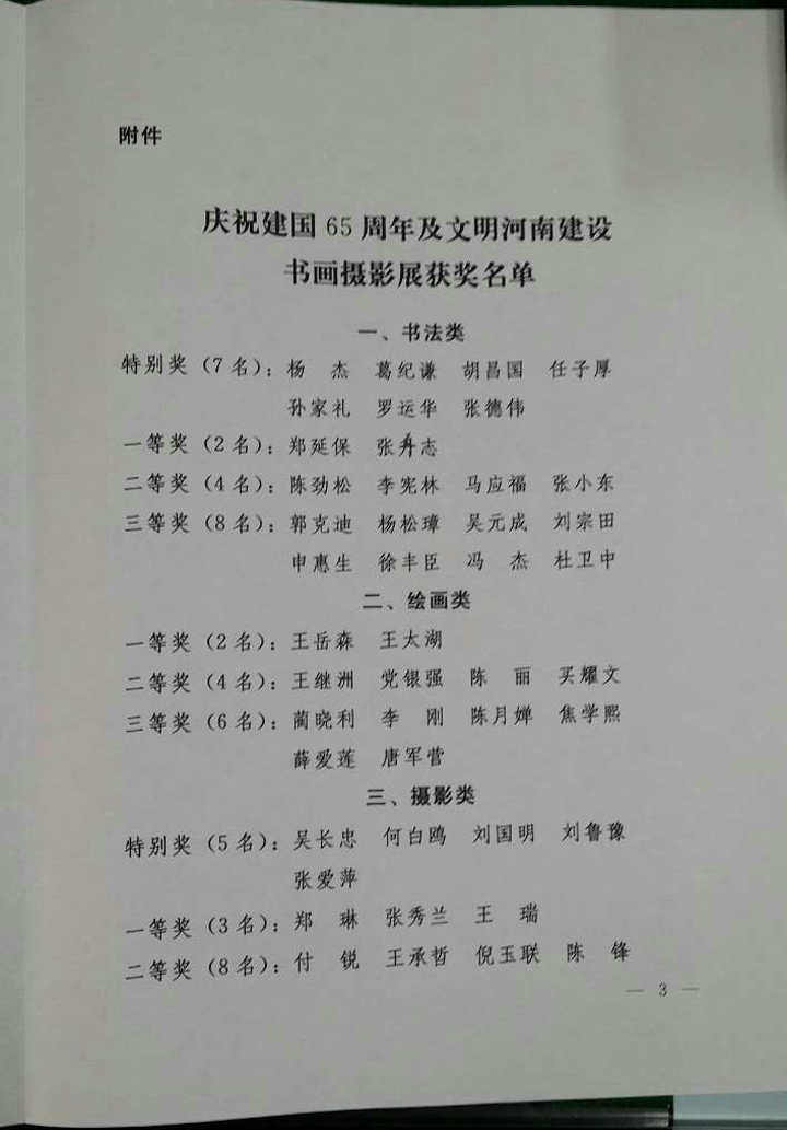 慶祝建國65周年及文明河南建設(shè)書畫攝影展獲獎名單