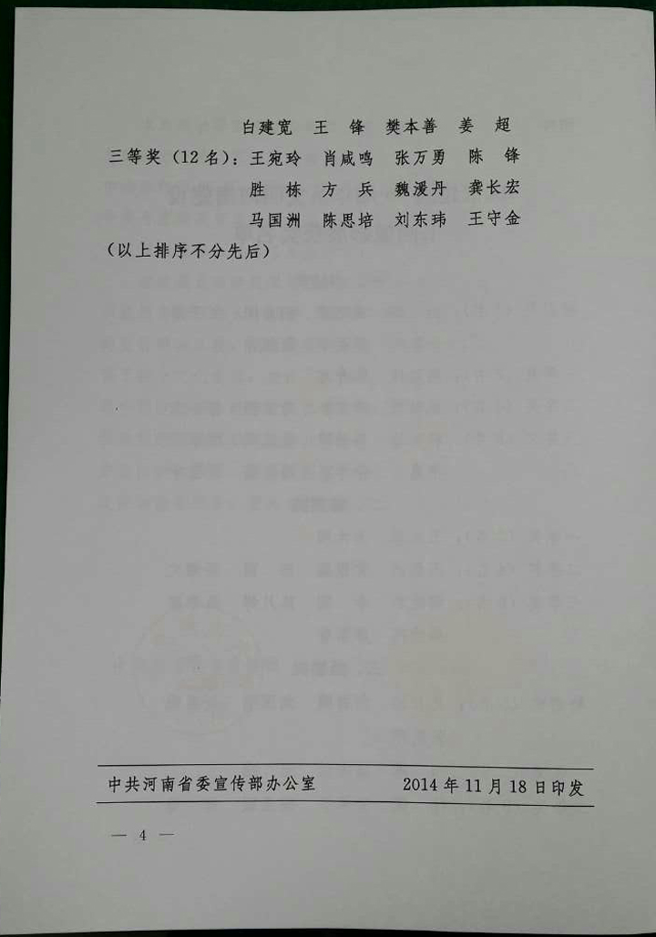 二等獎(4名):王繼洲 黨銀強 陳 麗 買耀文